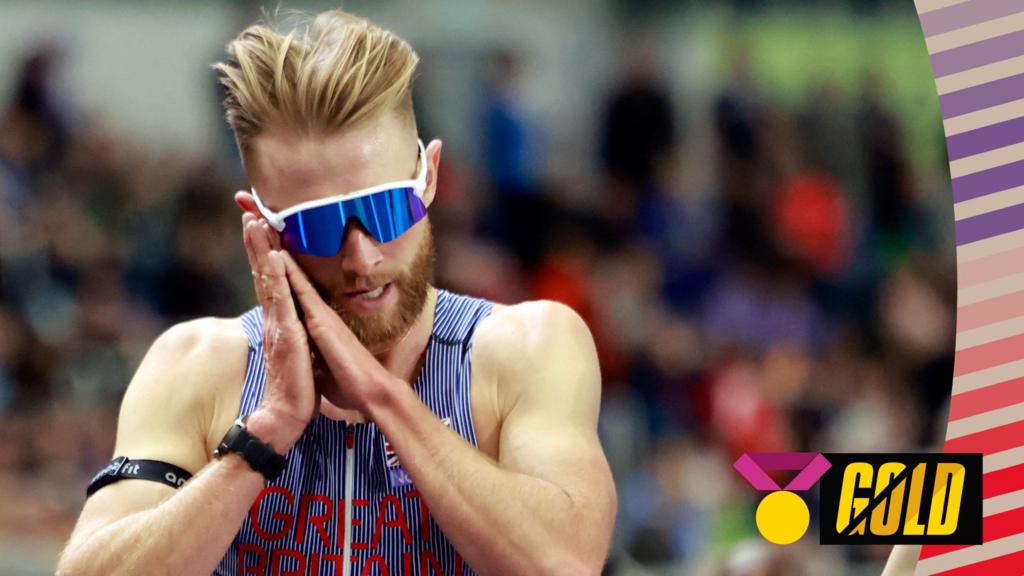 Great Britain’s Josh Kerr wins gold in the men’s 3,000m at the World Indoor Athletics Championships in Poland, with Cole Hocker taking silver for USA and and France’s Yann Schrub earning bronze.