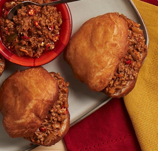 Magwinya with savoury mince is a favourite dish of many South Africans