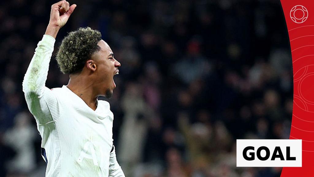 Wilson Odobert scores early in the second half as Tottenham pull one back against Aston Villa, with the away side leading 2-1 in their FA Cup third round match.