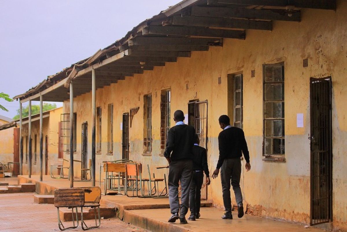 South African learners taught in mud brick classrooms built by parents in 1958